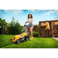 • převod otáček pomocí malého klínového řemene výrazně zvyšuje točivý moment stroje (více síly i v hustší trávě) a při nárazu nože na překážku zabrání spálení motoru a tím pádem i drahé opravě